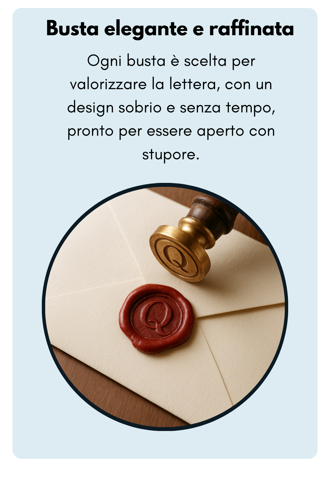La privacy dei nostri clienti è una priorità assoluta. Le lettere sono custodite in modo sicuro nel nostro archivio segreto e vengono consegnate solo ai destinatari designati, mantenendo riservatezza e protezione delle tue parole.